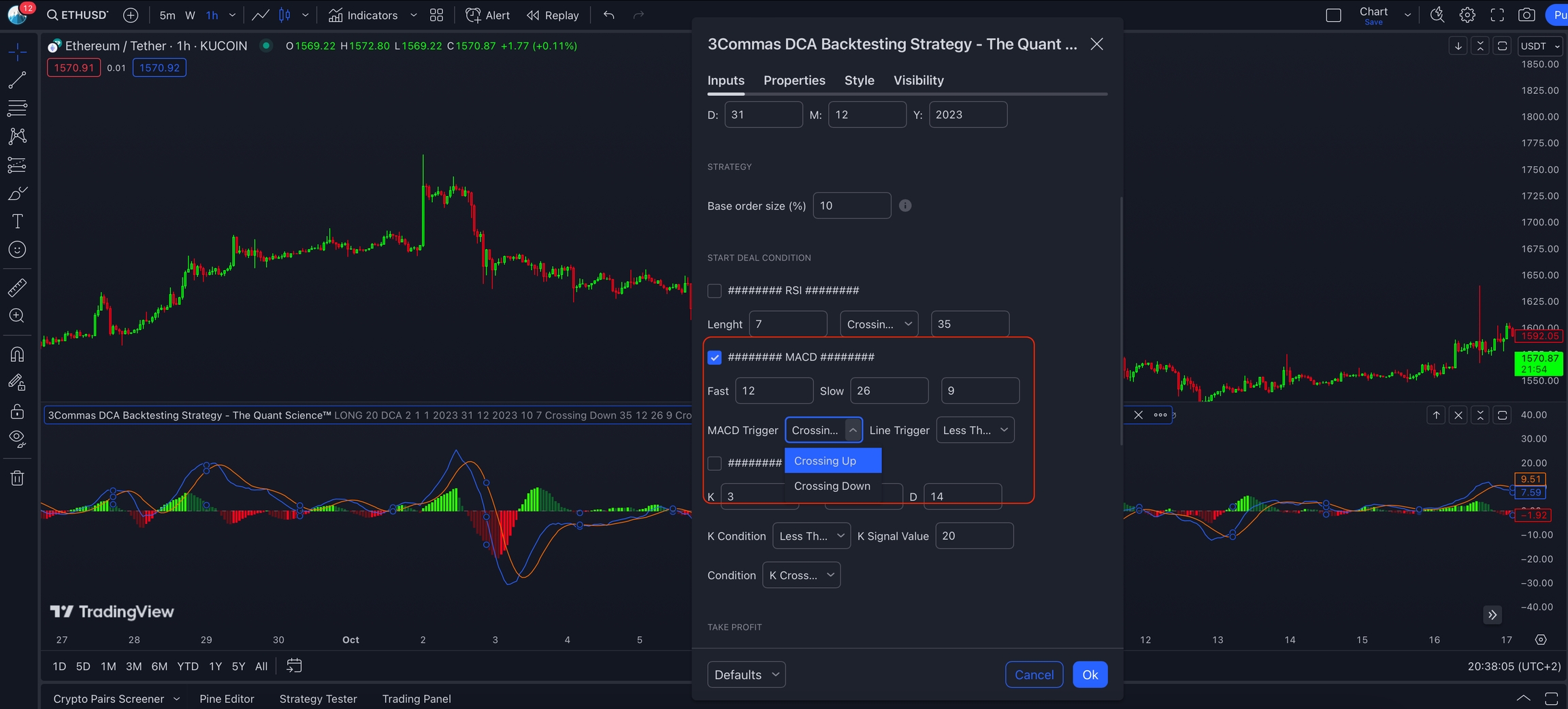 If you have backtested using the MACD indicator and want to proceed by automating the strategy all you have to do is create a new condition in the 3Commas dashboard and configure it according to your backtesting parameters.