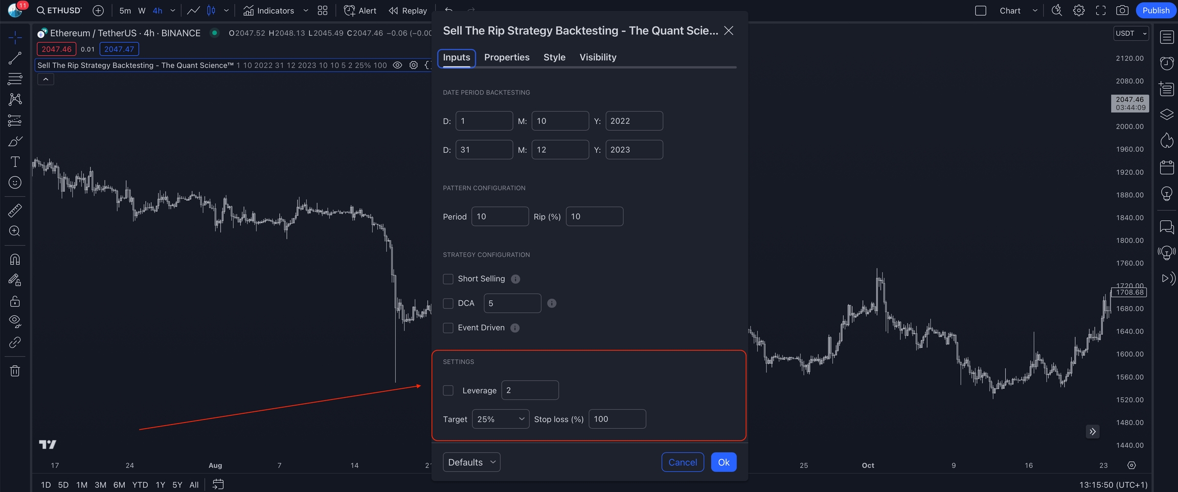 Leverage: activate this function to analyze the strategy using leverage.